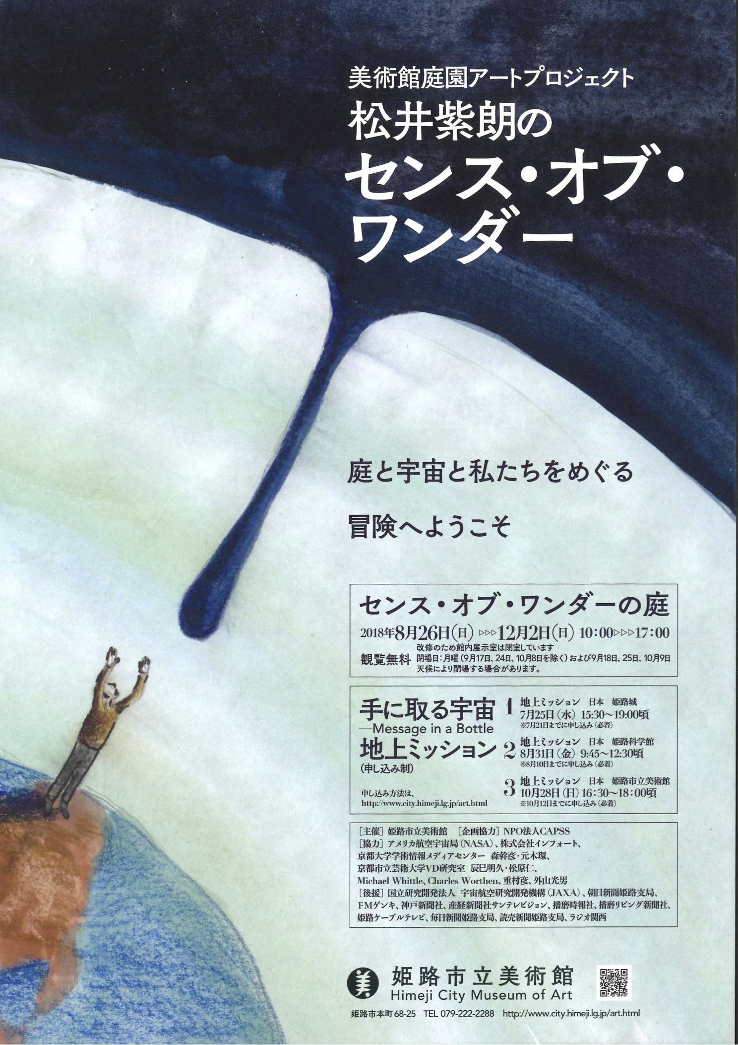 改修のため休館中の姫路市立美術館にて、庭園アートプロジェクト「松井紫朗のセンス・オブ・ワンダー」と「手に取る宇宙−Message in a Bottle 地上ミッション」が行われました。参考→https://www.kcua.ac.jp/20180826_matsuishiro/
