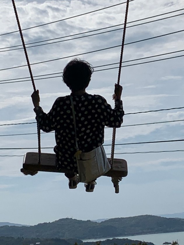 屋形崎 夕陽の丘に作品と何故か海に向かってブランコがある、つい漕いでしまうのだ、気持ちよさそう!