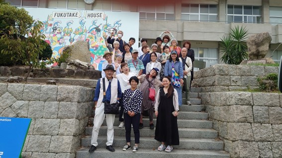 お決まりの集合写真、今の時代でも撮ってしまう福武ハウス前にて。